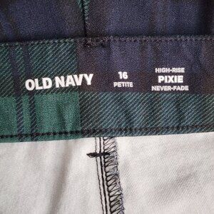 Old Navy Pants Womens Size 16P 16 Petite Blue Green Plaid Pixie High Rise Preppy