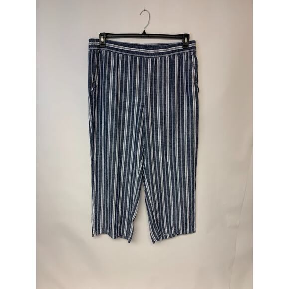 Old Navy Pants Womens Size XL Navy & White Striped Linen Blend Beach Coastal