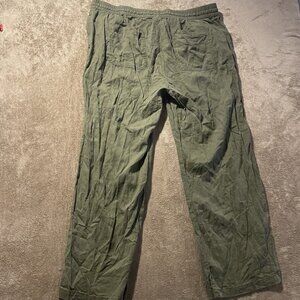 Old Navy Pants Womens XL Olive Green Linen Pull On Wide Leg Stretch Drawstring