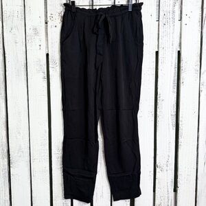 Old Navy Paperbag Waist Pants Rayon Size Small Petite Black Drawstring Pockets Lightweight Pull On Easy Wear Comfy Dress Up or Casual