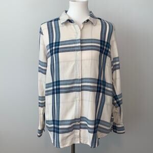 Old Navy - White and blue plaid, button down, peak cotton flannel. The classic shirt. Super soft and cozy. Size women's large