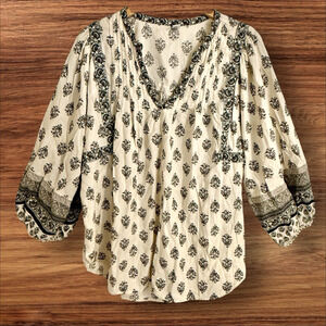 Old Navy Peasant Top Sz 3X Ivory w Black floral Print Balloon Sleeve Super Comfy