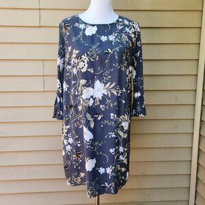 Old Navy Petite Bluish-Gray Floral Shift Dress 3/4 Bell Sleeves