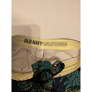 Keywords: Old Navy, swim trunks, board shorts, pineapple print, mens swimwear, summer shorts, beach wear, pool attire, drawstring shorts, size 34, tropical print, vacation, swimwear