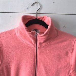 Old Navy 1/2 Zip Fleece Pullover Womens Size Medium Pink Sweater Jacket Hi Lo. Excellent condition. Color on tag is called "Lotus Orange" but sweater looks pink.