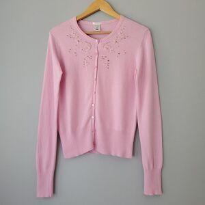 Old Navy Pink Floral Sequin Long Sleeve Button Up Cardigan Sweater Womens Medium