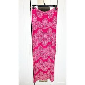 Old Navy Pink Geometric Floral Knit Strapless Drawstring Tube Midi Dress Size XL