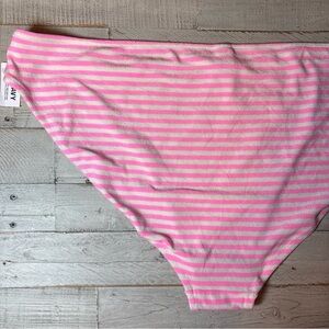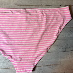 Old Navy Pink Low Rise Terry Classic Bikini Bottoms NWT Size 4X Low-Rise Striped Terry Classic Bikini Swim Bottom. Elastic waistband. Hygienic sticker. Quick dry terry comfortable two way stretch and full lining. Built in sun protection. Mix or mix any other swim tops or bottoms in my store. 93% nylon, 7% spandex.