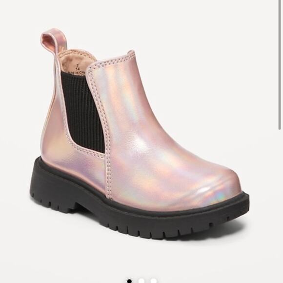 Old Navy Pink Metallic Faux Leather Chelsea Boots