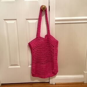 Old Navy Pink Straw/Paper Beach/Pool/Summer Crochet, Open Weave Tote Bag