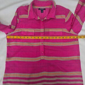 Old Navy Pink Stripe Chest Pockets Button Front Long Sleeve Shirt Women's Medium
