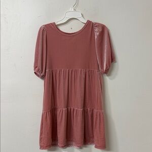 Charming pink dress with tiered design. Short sleeves. Soft fabric.