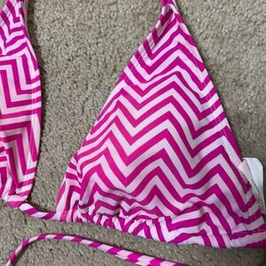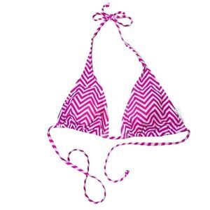 Pink and white striped bikini top from Old Navy. Adjustable triangle cups. Ties at neck and back. Pockets for removable inserts (inserts included). Size M. Gently preowned condition with no tears or stains.