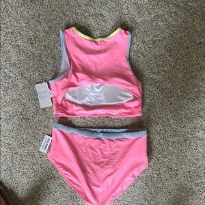 3 piece set new with tags and never worn. Two tops (long sleeves crop and tank style) and one set of bikini bottoms.