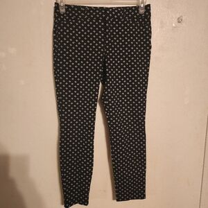 Old Navy Pixie Mid-Rise Black White Printed Pants with Pockets Size 4 Inseam 24"