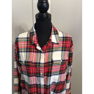 Old Navy Plaid Boysfriend Shirt Comfy Large L Button Front Womens
