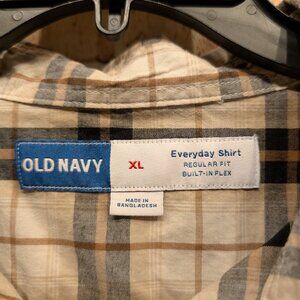 Old Navy plaid button-up shirt in beige and black. Classic and versatile style.