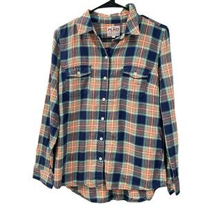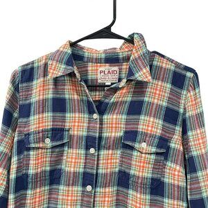 Old Navy Plaid Collared Blue Green Button Down Shirt Long Sleeve Size Medium M