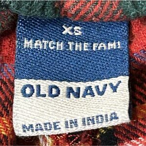 The product is a pair of X-Small plaid drawstring elastic waist pajama pants from Old Navy in burgundy, red, and green colors. Made from flannel fabric, these pajama pants feature a festive plaid pattern perfect for the holiday season and are suitable for fall, winter, and spring. With a comfortable elastic waist and drawstring closure, these pants are a cozy and stylish addition to any woman's sleepwear collection.