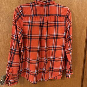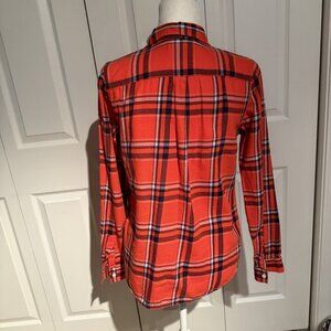This Old Navy plaid shirt is a stylish and versatile addition to any woman's wardrobe. Made from 100% cotton flannel in a vibrant orange color, this button-up shirt features a collared neckline, long sleeves, and a casual button closure. Perfect for a classic, everyday look, this lightweight and easy-care shirt is machine washable and includes convenient pockets. Whether worn in the winter, fall, or spring, this shirt is sure to keep you comfortable and stylish. Excellent Condition. Shipped with USPS. From a smoke free and pet free home.
