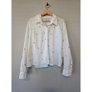 Old Navy Plus 2X White Floral Embroidered Cropped Shirt Cotton Button Down Shirt