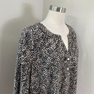 Old Navy Plus 3X Leopard Animal Print Blouse Rayon Tunic Top Long Sleeve