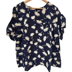 Old Navy Plus 3X Navy Blue Linen Top Blouse White Floral Print Short Sleeve