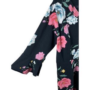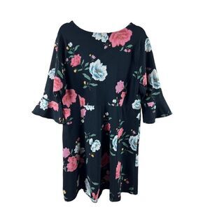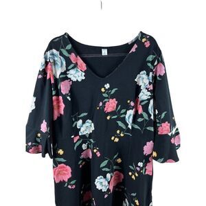 Old Navy Plus Fit & Flare 3/4 Bell Sleeve Jersey Floral Dress Black Size 2X