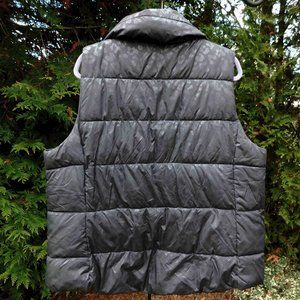Old Navy gray with shimmery tonal animal-print weather-resistant fleece-lined insulated puffer vest with zip & snap closure and onseam pockets