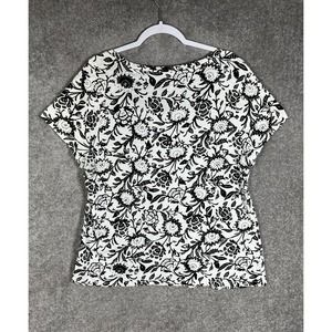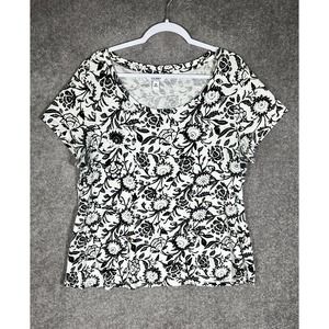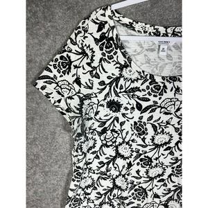 Old Navy Plus Scoop Neck Short Sleeve Floral Top Womens Size 2X White Black