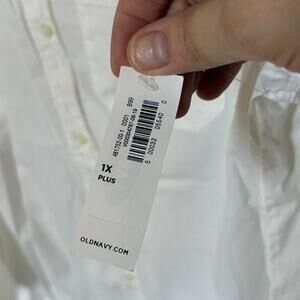 Old Navy Plus Size 1X Button Up Shirt NEW Long Sleeve Top Bright White Stretch