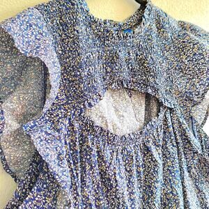 Old Navy Women Plus Size 4x Blue Yellow Floral Peephole Flutter Sleeve Top Blouse Shirt