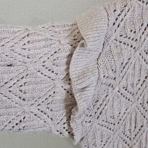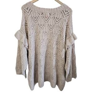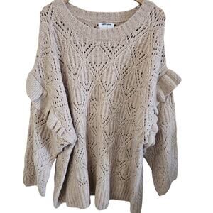 Old Navy Pointelle Knit Sweater Womens Sz 4X Ruffle Trim Metallic Oatmeal Cozy