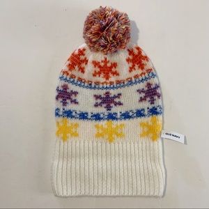 Old Navy pom knit beanie. Snowflake design. 85% polyester, 15% acrylic. NWT. Feel free to ask any questions.