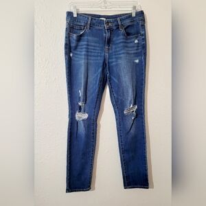 Old Navy Pop Icon Skinny Jeans Women Size 6 Blue Distressed Mid Rise Straight