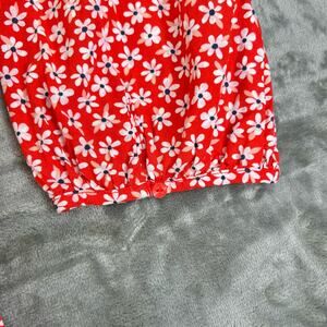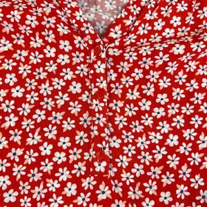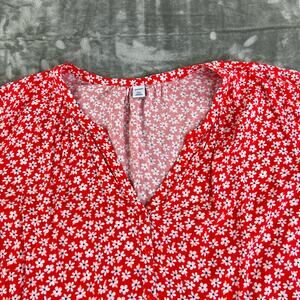 Old Navy Pop Over V-Neck Blouse Red with White Floral Pattern Womens Size XXL