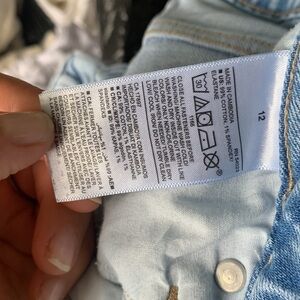 Old Navy Power Slim Straight Hi-Rise Jeans sz 12 distressed buttons fly festive