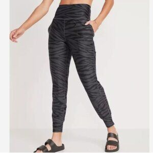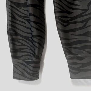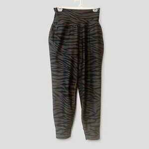 High-waisted 7/8 joggers, medium-sized, Powersoft charcoal zebra print joggers (print no longer sold!), with pockets and cuffed leg openings.