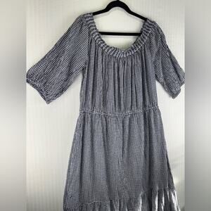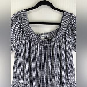 Old Navy Prairie Dress Navy Blue & White Gingham Check Off-The-Shoulder Size XXL
