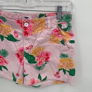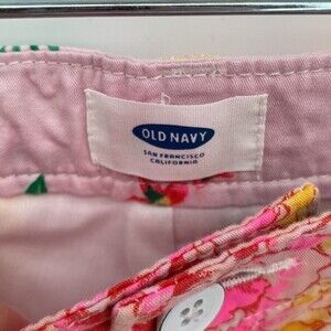 Old Navy Printed Chino Pink Green Floral Adjustable Waist Shorts Girls 16