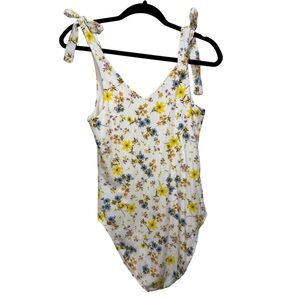 Old Navy Printed Tie-Shoulder V-Neck Rib-Knit Bodysuit - White Floral