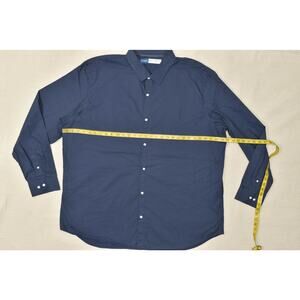 This Old Navy Pro Signature men's long-sleeve shirt features a stylish navy blue background with a white polka dot pattern, offering a modern and versatile look. Designed in a Slim Fit and a Tall size XXXL (3XL), it provides a tailored silhouette for taller individuals. The shirt is equipped with Go-Dry technology, indicating moisture-wicking properties to keep you dry and comfortable. Made from a blend of 97% cotton and 3% spandex, it offers comfortable stretch and breathability. It has a classic collar and full button-down front, making it suitable for various occasions, from casual wear to smart-casual events. This shirt is in excellent used condition with no visible signs of wear or damage. Made in Sri Lanka. Perfect for everyday wear or activities where moisture management is a plus. Please refer to the provided images for precise measurements to ensure an accurate fit.