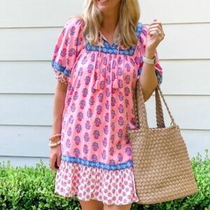 Old Navy Puff Sleeve Crafted Swing Mini Dress in Pink Floral Print XL