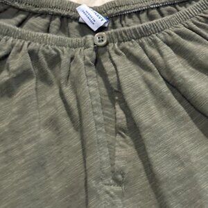 Achieve an effortless, bohemian-inspired look with this comfortable peasant blouse from Old Navy. It features a flattering wide, gathered neckline, a simple single-button detail at the front, and trendy voluminous puff sleeves. The soft, breathable fabric in a muted olive/military green makes it a great versatile piece for casual wear.