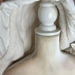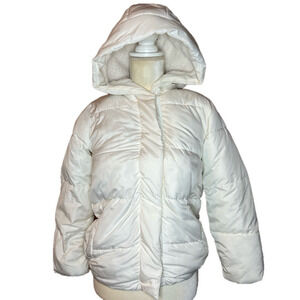 Size L in girls but can definitely fit a small for adults Color is sea salt, it looks white to me In great condition