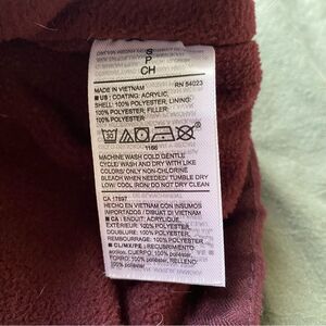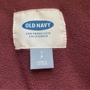 Old Navy brand. burgundy zipper puffer vest, fleece lined, pocket on each side. size small. Gently worn handful of times. in excelled pre-owned condition.