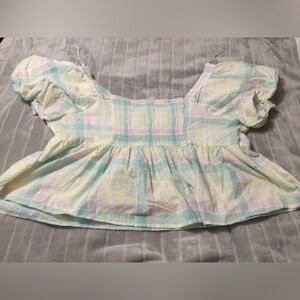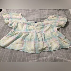 Old Navy Puffy Sleeve Pastel Plaid Blouse Size 4X NWOT