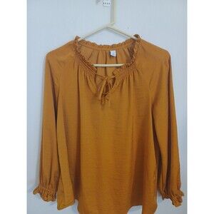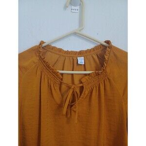 Old Navy Pullover Knit Top M Mustard Yellow Longsleeve Ruffled Boho Peasant
