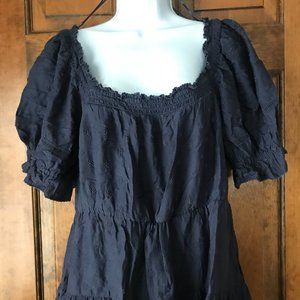 Old Navy Pullover Navy Blue Tiered Dress w/Scattered Embroidered Flowers Large
