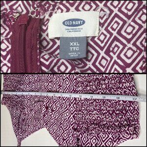 Old Navy Plum Purple White Sleeveless Geometric Print Smocked Stretch Dress Size XXL